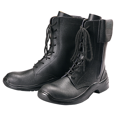 発泡ポリウレタン二層底、静電仕様の半長靴編上げタイプ。